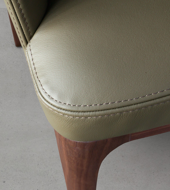 Ножки из массива крашеного ясеня или итальянского ореха. Наполнение из полиуретана со слоем из полиэстра. Обивка в коже или в ткани.