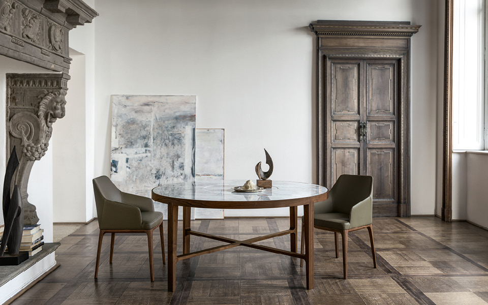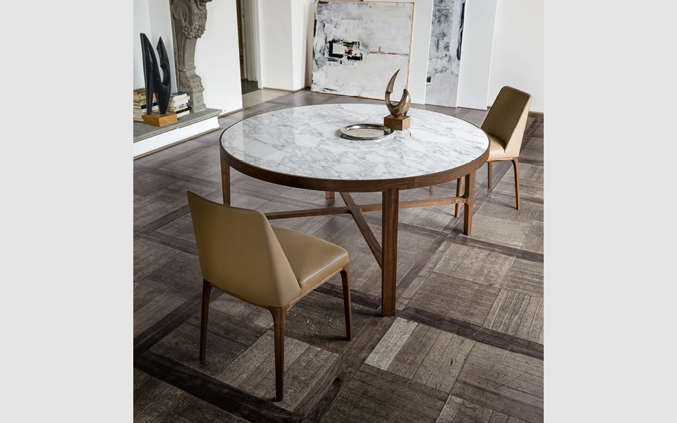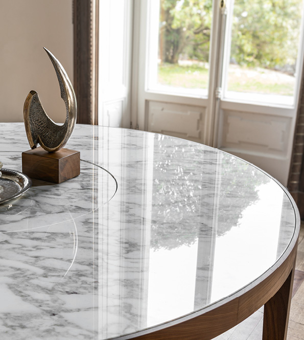 Как подсказывает уже само название, «Глоуб» предлагает все преимущества круглого стола, от отсутствия выступов до «демократизации» разговоров между сотрапезниками. «Глоуб» отличается большой декоративностью благодаря дорогим материалам, из которых состоит его столешница – на выбор от элегантного мрамора до легкости дымчатого стекла.