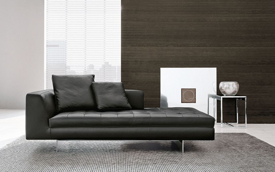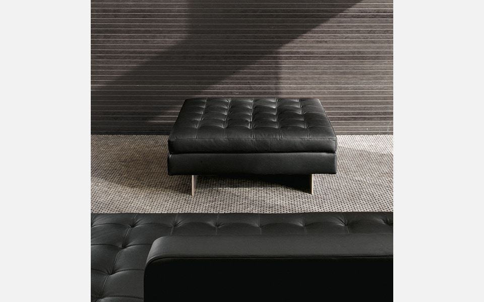 Деревянный каркас с пеной из полиуретана и слоем из полиэстра. Подушки с наполнением из полиуретановой пены разной степени плотности и слоем из полиэстра. База в необратотанном или крашеном алюминии. Обивка в ткани или в коже.